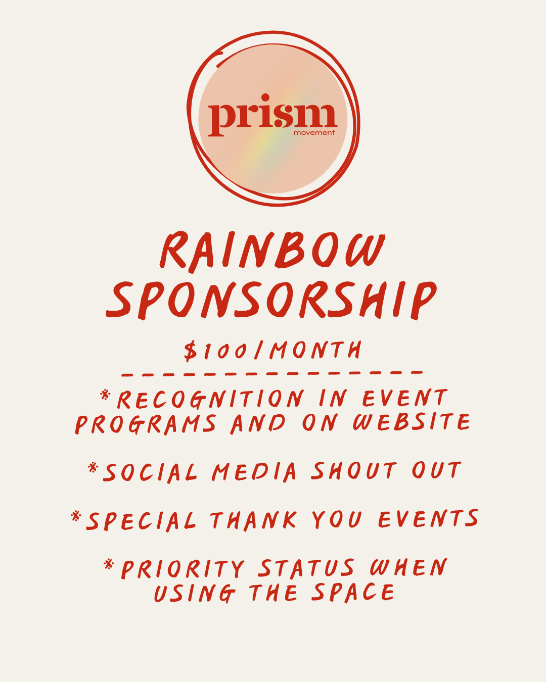 We need a place that is built for us to embark on this exploration through community, movement, spirituality, and authenticity. The goal of Prism is to make that place a reality. We offer a diverse range of movement and recreational classes and events with the hope of creating joy and encouraging self discovery. We plan to host sound baths, guided meditations, mindful movement, mirror work, ecstatic dance, sword classes, self defense, burlesque and drag, and MORE!